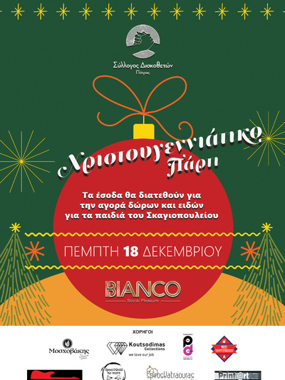 Στις 18 Δεκεμβρίου 2025 στο Bianco Social Pleasure (Ρήγα Φερραίου 148-150) - Τα έσοδα θα διατεθούν για την αγορά δώρων για τα παιδιά του Παραρτήματος Προστασίας Παδιού και Νέων Αχαΐας - Σκαγιοπούλειο