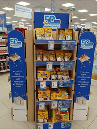Από τις πρώτες ημέρες της επετειακής χρονιάς, τα καταστήματα άρχισαν να «ντύνονται» στα χρώματα της ιστορίας της επιχείρησης. Πάνω από 50 στολισμένα stands, 50 ειδικά διαμορφωμένες προβολές, 12 επετειακά van και 14 φορτηγά με νέο branding , έκαναν την παρουσία της αλυσίδας αισθητή σε κάθε γειτονιά. Αφίσες τοποθετήθηκαν στις εισόδους όλων των καταστημάτων, δημιουργώντας μια καθημερινή, ζωντανή υπενθύμιση των πέντε δεκαετιών που πέρασαν.