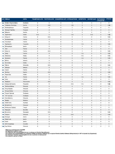 70 Σαμπντόρια Ιταλία 0 (1) 0 0 1 (1) 0 0 (1) 0 1 (3)
