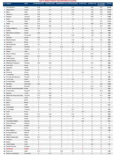 A/A OMΑΔΑ ΧΩΡΑ ΤΣ. Λ. ΓΙΟΥΡΟΠΑ ΛΙΓΚ ΚΟΝΦΕΡΕΝΣ ΚΥΠΕΛΛΟΥΧΩΝ ΙΝΤΕΡΤΟΤΟ ΣΟΥΠΕΡ ΚΑΠ ΠΑΓΚΟΣΜΙΟ ΣΥΝΟΛΟ