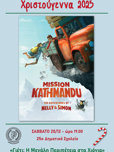 7.00 μ.μ. ΠΡΟΒΟΛΗ ΤΑΙΝΙΑΣ – 25ο ΔΗΜΟΤΙΚΟ ΣΧΟΛΕΙΟ ΠΑΤΡΩΝ (ΜΑΡΑΓΚΟΠΟΥΛΟΥ 30)