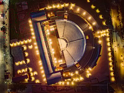 Πριν δύο χρόνια, ήταν το Ρωμαϊκό Στάδιο η Colonia Augousta της Ηφαίστου που άναψε τα φώτα του χθες μέσα στην καρδιά της νέας πόλης, σε μια διαδρομή μεταξύ σύγχρονων μπαρ και κλαμπ, εστιατορίων, ουζερί και… νοσταλγίας. Πριν ένα μήνα, το φως έλουσε -κυριολεκτικά-, το πιο εμβληματικό μνημείο της δικής της αρχαιότητας, το επιβλητικό κοίλο της Άνω Πόλης, αποκαλύπτοντας με νέο τρόπο τις λιτές καμπύλες του, τους θόλους, τα εδώλια, τις μαρμάρινες βαθμίδες, αλλά και τις διαδοχικές εποχές που άφησαν εκεί το αποτύπωμά τους.