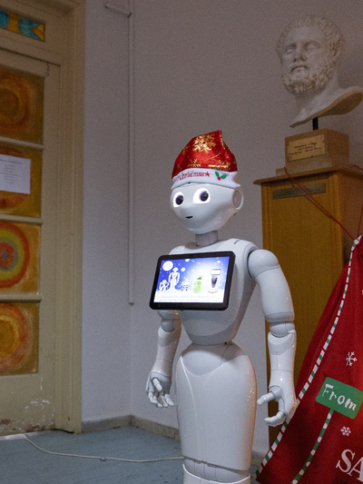 Ο Pepper «μπήκε στην παρέα», όπως χαρακτηριστικά είπε ο κ. Γαλαμάτης, και τραγούδησε τα Χριστουγεννιάτικα κάλαντα στα παιδιά.