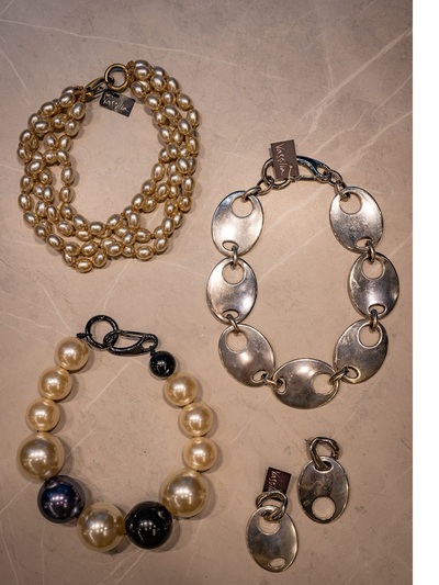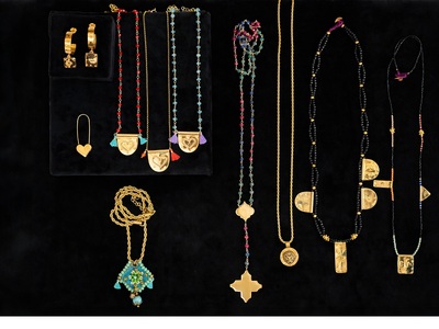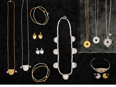 Αυτή την περίοδο μπορείτε να βρείτε κομμάτια με κυρίαρχο το στοιχείο της glam rock παραμάνας, την καινούρια old vibe σειρά «Σεμέν» από ασήμι 925 ή ασήμι επιχρυσωμένο σε συνδυασμό με πέρλες, καθώς και τα πιο φολκλορικά σφυρήλατα pieces με τις γυάλινες χαντρούλες. Για τις γιορτές των Χριστουγέννων, προτείνονται το γούρι lucky coin σε μορφή τρύπιας δεκάρας με το μήνυμα «lucky me» και τα κολιέ gingles ladies επίσης ως τυχερά μπιζού ή δωράκια με ματάκια και καρδούλες.
