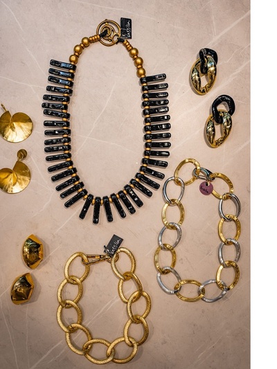 H Κατερίνα Παπαδημητρίου επιμένει να δημιουργεί τα πάντα «στο χέρι». Η μόδα ήταν «στο αίμα της» ανέκαθεν. Από τα σχολικά χρόνια πειραματιζόταν με την εικόνα της και έφτιαχνε πολλά και διάφορα, οπότε σπούδασε fashion design, εξελίχθηκε σε στυλίστρια και σχεδιάστρια, καθηγήτρια ενδυματολογίας και αισθητικής, υπεύθυνη εμπορικού καταστήμα τος κ.α. Ταυτόχρονα, μέχρι σήμερα παρουσιάζει τα πιο stylish καρναβαλικά αξεσουάρ με πρω τοποριακή ματιά. Το label tama γεννήθηκε την περίοδο της πανδημίας. Λανσάρει girly κοσμήματα με vintage, boho, pop και rock επιρροές. Σχέδια που αποπνέουν νεανικότητα, δροσιά, θεατρι κότητα και παιχνιδιάρικη διάθεση, καθόλου στημένα και «comme il faux». «Όταν τα παιδιά μου ήταν ακόμα μικρά, έμαθα να κεντάω και κυκλοφόρησαν τα πρώτα, κεντημένα βραχιολάκια με τις λέξεις και τα φυλαχτά λαιμού. Μετά παρακολούθησα σεμινάρια αργυροχρυσοχοΐας και κατα πιάστηκα με το ασήμι. Λάτρεψα τις σκληρές τεχνικές- σφυρηλάτηση, πύρωμα κ .α. - που οδηγούν σε ένα γυαλιστερό και φινιρισμένο αντικείμενο. Πλέον απέκτησα κανονικό εργαστήριο. Παρα μένω μάστορας, πιστή στη χειρωνακτική εργασία» μας εξηγεί η Κατερίνα.
