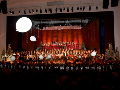 400 ερμηνευτές σε ένα πρόγραμμα 3½ ωρών, προσέφεραν μοναδικές στιγμές, μέσα από τη μαγική μουσική των Χριστουγέννων και με ένα εορταστικό ρεπερτόριο από όλο τον κόσμο. Συμμετείχαν οι καταξιωμένοι και διαπρεπείς λυρικοί καλλιτέχνες της ΕΛΣ, Βασιλική Καραγιάννη (σοπράνο κολορατούρα) και Τάσος Αποστόλου (βαθύφωνος) και οι πιανίστες του Οργανισμού, Μαρίνα Μυλωνά και Λούση Χριστοδούλου, η ΣΥΜΦΩΝΙΚΗ ΟΡΧΗΣΤΡΑ του Οργανισμού «SINFONICA», οι χορωδίες (ΠΡΟΠΑΙΔΙΚΗ- ΠΑΙΔΙΚΗ- ΝΕΑΝΙΚΗ- ΜΙΚΤΗ- Γ.Φ.Σ. «ΕΜΜΕΛΕΙΑ») οι Ορχήστρες (ΦΙΛΑΡΜΟΝΙΚΗ, «MUZICANTO», ΟΡΧΗΣΤΡΑ- ΧΟΡΩΔΙΑ ΠΑΡΑΔΟΣΙΑΚΗΣ ΜΟΥΣΙΚΗΣ «ΗΛΙΟΔΩΡΙΑ») του Οργανισμού, η Ακαδημία Χορού/Dance «A», της Ελένης Μπαλαφούτη και η Σχολή Χορού «Tanguera» Dance Academy, της Ιωάννας Ανδρικοπούλου.