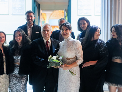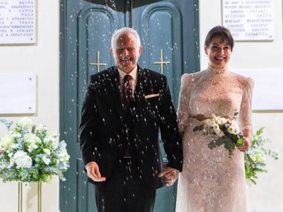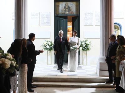 Το μυστήριο έγινε σε πολύ στενό οικογενειακό και φιλικό κύκλο. Κουμπάροι του ζευγαριού είναι οι φίλοι τους Γιώργος Μακρόπουλος και η σύζυγός του Άννα.