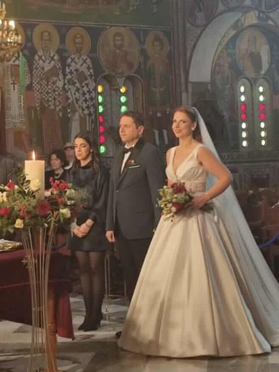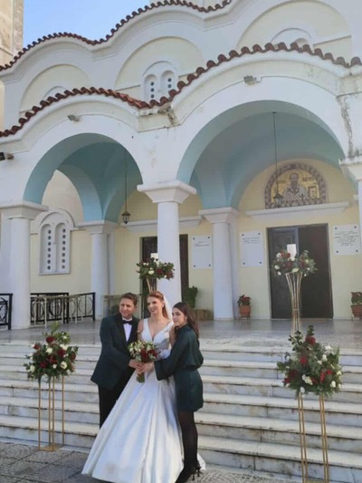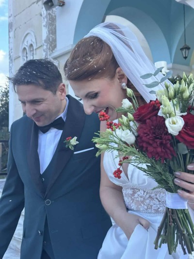Η νύφη εργάζεται ως ιδιωτική υπάλληλος στη Μαγνητική Πατρών, ενώ κουμπάρα του ζευγαριού ήταν η Δέσποινα Μανωλοπούλου, ιδιωτική υπάλληλος και καθηγήτρια Γαλλικής Φιλολογίας.