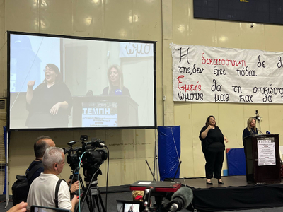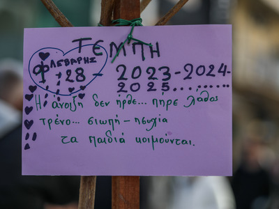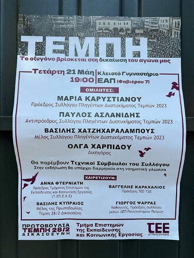 Κατάμεστη η ΕΑΠ για την Μαρία Καρυστιανού- Μόνες άδειες θέσεις, αυτές των 57 θυμάτων