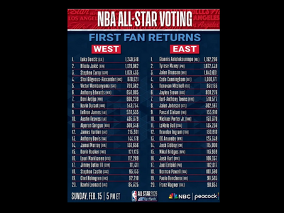 Όπως γράφει το sport24, πρώτος σε ψήφους στη Δύση είναι ο Λούκα Ντόντσιτς (1.249.518), με τον Γιάννη Αντετοκούνμπο να προηγείται στην Ανατολική Περιφέρεια (1.192.296).