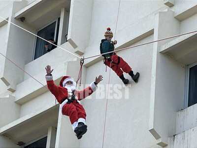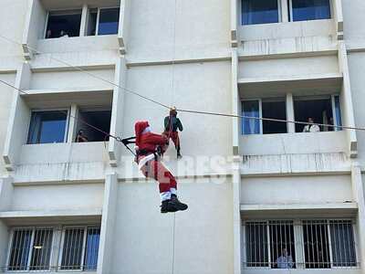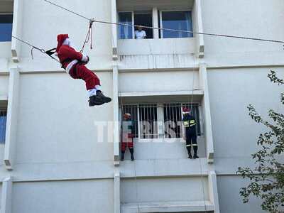 Πυροσβέστες της 6ης ΕΜΑΚ κατέβηκαν με σκοινιά και έδωσαν δώρα στα παιδιά της Παιδιατρικής