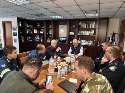 Στο πλαίσιο συνεργασίας και συντονισμού, πραγματοποιήθηκε σύσκεψη στην Π.Ε. Αχαΐας μεταξύ του Αντιπεριφερειάρχη Φωκίωνα Ζαΐμη, του επικεφαλής ΠΑΜ–ΠΣΕΑ (Αυτοτελούς Τμήματος Παλλαϊκής Άμυνας και Πολιτικής Σχεδίασης Εκτάκτων Αναγκών) Γιώργου Σωτηρόπουλου και των συναρμοδίων υπηρεσιών (αστυνομία, πυροσβεστική) και του εκπροσώπου του στρατού.