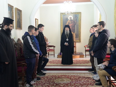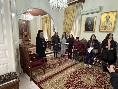Ο κ.κ. Χρυσόστομος υποδέχθηκε με μεγάλη χαρὰ & πατρικὴ αγάπη τους καλαντιστὲς και ευχήθηκε απὸ καρδίας, για έτη πολλὰ παρά Κυρίου, ευλογημένα και χαριτωμένα