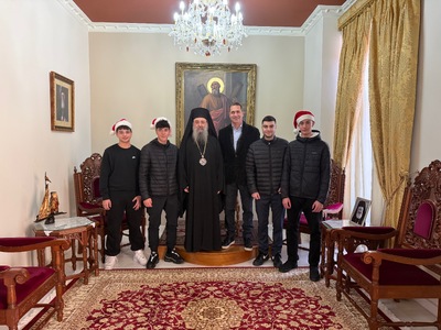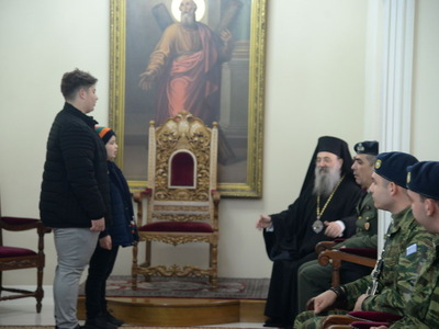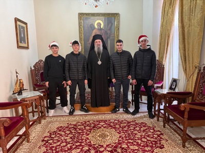 Ο σεβασμιότατος Μητροπολίτης Πατρών κ.κ. Χρυσόστομος ὑπεδέχθη μὲ μεγάλη χαρὰ καὶ πατρικὴ ἀγάπη τους καλαντιστὲς καὶ εὐχήθηκε ἀπὸ καρδίας, γιὰ ἔτη πολλὰ παρά Κυρίου, εὐλογημένα καὶ χαριτωμένα.