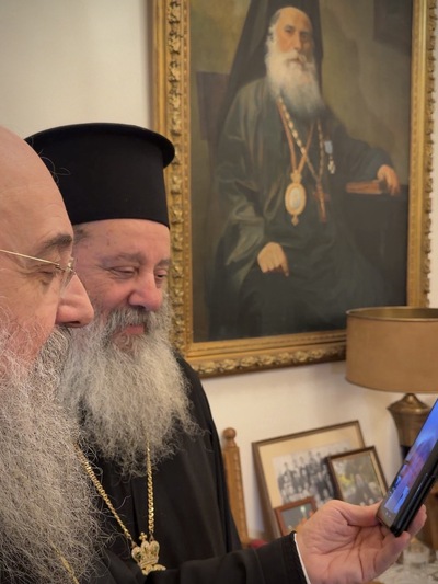 8. Ἐπίσης τὰ κάλαντα ἔψαλαν, ιντερνετικὰ, στον σεβασμιότατο Μητροπολίτη Πατρών κ.κ. Χρυσόστομο καὶ στὸν Θεοφιλέστατο Ἐπίσκοπο Κερνίτσης, κ. Χρύσανθο