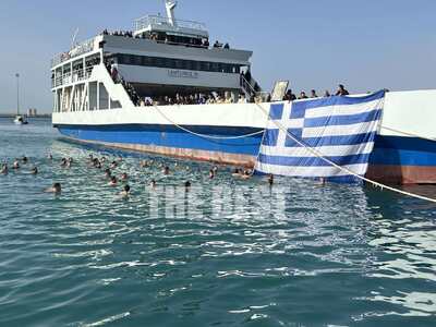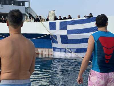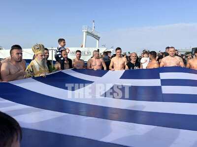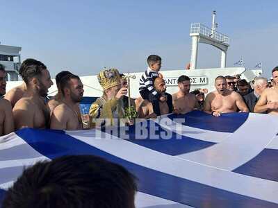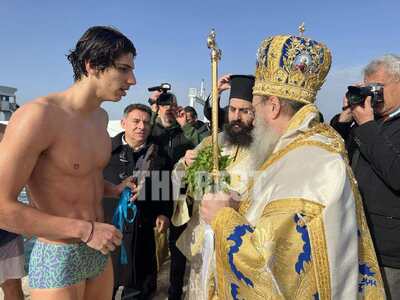 Στις 11 π.μ., ακολούθησε ο Αγιασμός των Υδάτων, από τον Μητροπολίτη Πατρών στον μόλο της Αγίου Νικολάου.