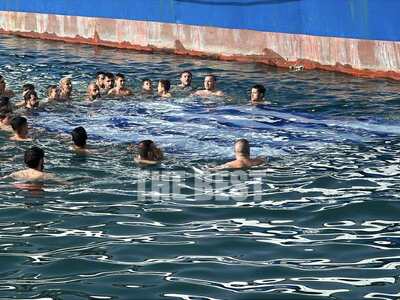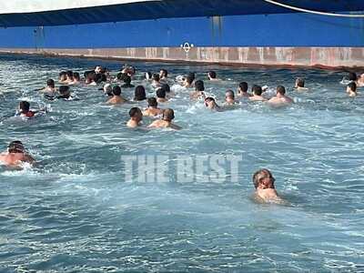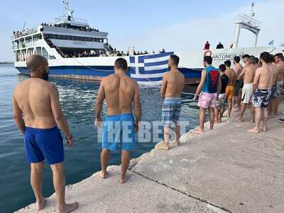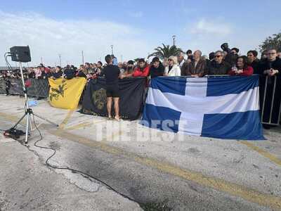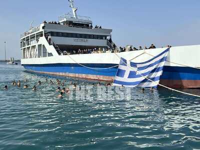Οι συμμετέχοντες όταν βγήκαν ξανά στη στεριά έψαλαν τον εθνικό ύμνο κρατώντας μια τεράστια ελληνική σημαία
