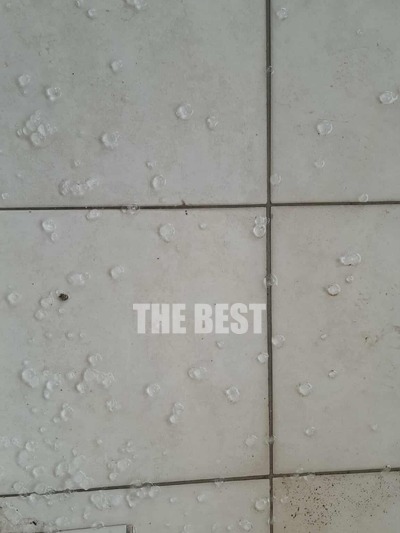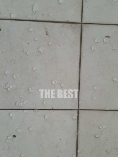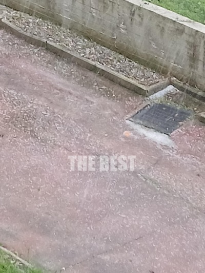 Μέσα σε λίγα λεπτά, δρόμοι, πεζοδρόμια και αυλές καλύφθηκαν από στρώματα χαλαζιού.