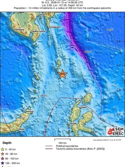 Ισχυρός σεισμός μεγέθους 6,8 Ρίχτερ σημειώθηκε το Σάββατο (10.01.2026) στην Ινδονησία.
