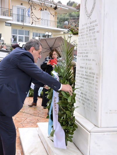Μετά την τέλεση Μνημοσύνου, ο Δήμαρχος απηύθυνε χαιρετισμό και στη συνέχεια κατέθεσε στεφάνι στο μνημείο που αναγράφονται τα ονόματα των εκτελεσθέντων, που ήταν οι: