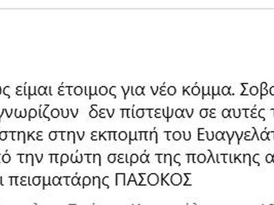 Διαψεύδει κατηγορηματικά τις φήμες περί ένταξής του στο κόμμα της Μαρίας Καρυστιανού – Τι αναφέρει στην ανάρτησή του