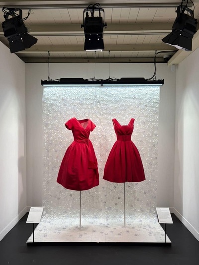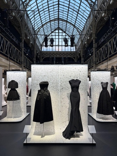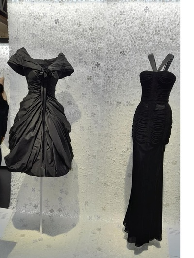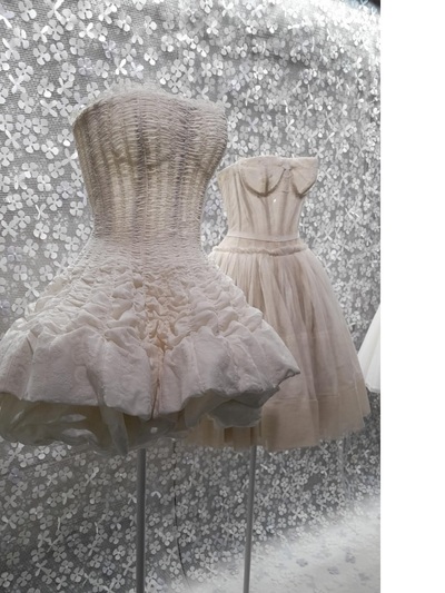 Περιηγηθήκαμε σε 30 εκθέματα με ετικέτα Dior και σε άλλα τόσα δια χειρός Alaia. Οι «κούκλες» ήταν στημένες έτσι ώστε να υπογραμμίζονται οι ομοιότητες σε χρώματα, σχέδια, υλικά.