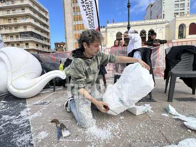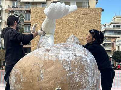 Μπροστά στα μάτια των περαστικών, καλλιτέχνες και κατασκευαστές του Καρναβαλικού Εργαστηρίου του Δήμου Πατρέων δουλεύουν πάνω στα σίδερα, το φελιζόλ και τα πρώτα σκαλίσματα των φιγούρων, αποκαλύπτοντας βήμα-βήμα τη διαδικασία με την οποία γεννιούνται τα νέα καρναβαλικά στοιχεία που θα «στολίσουν» την πλατεία Γεωργίου, όπου και θα παραμείνουν έως το τέλος της καρναβαλικής περιόδου