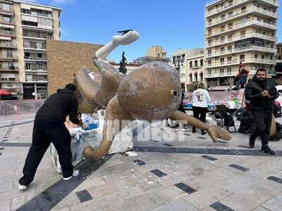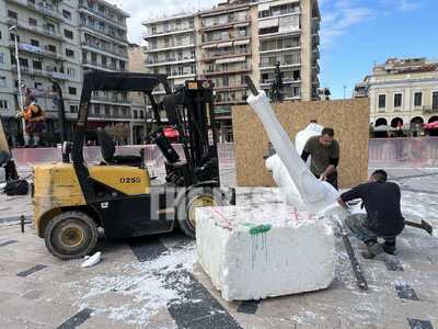 Μέχρι σήμερα το βράδυ, αναμένεται να έχει ολοκληρωθεί το χάρτωμα, ενώ την Παρασκευή οι φιγούρες θα βαφτούν λευκές και στη συνέχεια θα γίνει η κανονική τους επιζωγράφιση με κατάληξη την τελική συναρμολόγηση και την ένωση των δύο φιγούρων σε μια τελική σύνθεση.