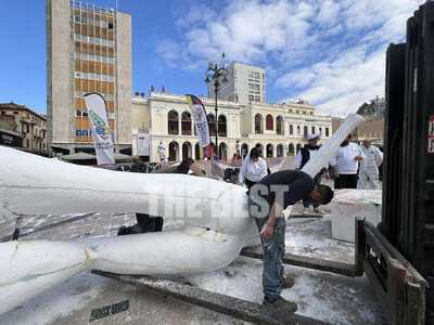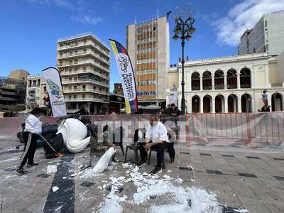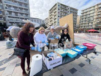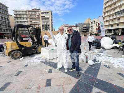 Η πλατεία, μόλις δύο ημέρες, πριν την Έναρξη του Πατρινού Καρναβαλιού, γέμισε μουσικές, χρώματα και δημιουργική ενέργεια, καθώς το κοινό έχει τη δυνατότητα, όχι μόνο να παρακολουθεί από κοντά τα στάδια της κατασκευής, αλλά και να βοηθάει.