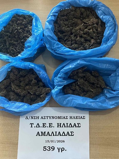 Ακολούθησε έρευνα σε αγροτική περιοχή του Βαρθολομιού, όπου οι αστυνομικοί εντόπισαν τέσσερις συσκευασίες που περιείχαν συνολικά 535 γραμμάρια κάνναβης, τις οποίες ο συλληφθείς φέρεται να είχε επιμελώς αποκρύψει.