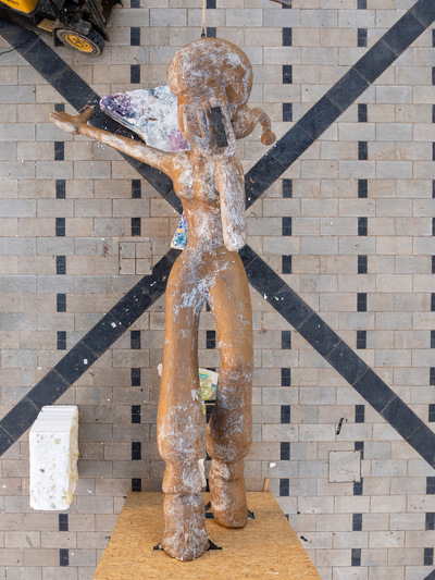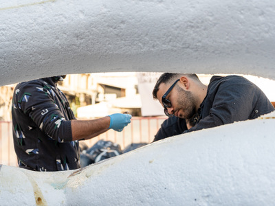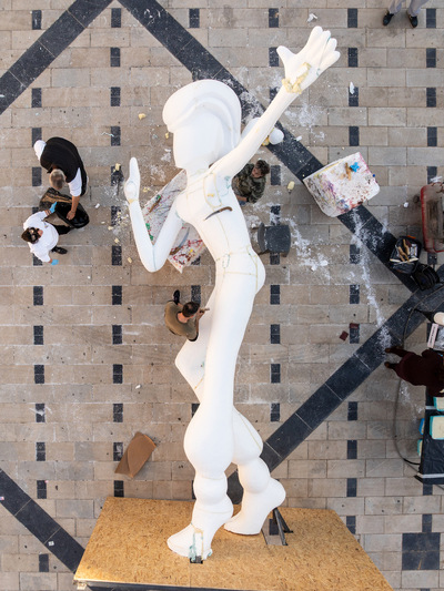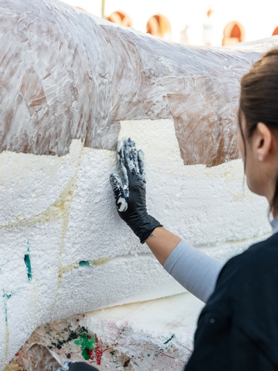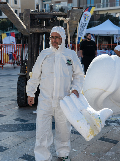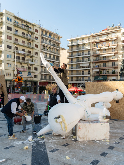 Χτες το μεσημέρι ολοκληρώθηκε το σκάλισμα και το βράδυ το χάρτωμα, ενώ σήμερα τη σκυτάλη πήρε η επιζωγράφιση και η τελική συναρμολόγηση των δύο φιγούρων της τελικής σύνθεσης.