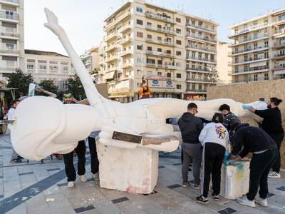 Δημιουργία επιτόπου καρναβαλικού μπάστακα στην πλατεία Γεωργίου Α΄ από Καρναβαλική Ακαδημία και ΚΕΔΗΠ-Καρναβάλι Πάτρας