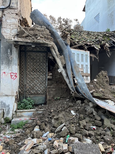 Το κτίσμα είναι μισογκρεμισμένο και οι φωτογραφίες είναι χαρακτηριστικές.
