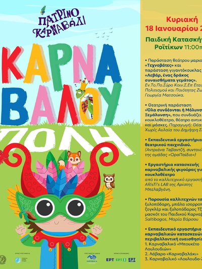 Με κεντρικό μήνυμα την προστασία του περιβάλλοντος και έναν πλανήτη καλύτερο για να ζήσουν τα παιδιά μας, το Καρναβάλι των Μικρών βάζει πλώρη με την 1η Καρναβαλούπολη αυτή την Κυριακή 18 Ιανουαρίου 2026 στις 11 το πρωί στην Παιδική Κατασκήνωση Ροϊτίκων.