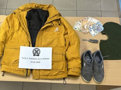 Σε έρευνες που ακολούθησαν, έπειτα από υπόδειξη του κατηγορούμενου, εντοπίστηκαν μέσα σε κάδο απορριμμάτων στον Πύργο το μπουφάν που φορούσε κατά τη διάπραξη της ληστείας, καθώς και το μαχαίρι (σουγιάς) που χρησιμοποίησε. Παράλληλα, κατασχέθηκε μοτοποδήλατο που είχε χρησιμοποιηθεί για τη διαφυγή του.