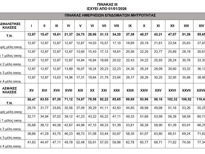 Τα ποσά του παραπάνω πίνακα προκύπτουν από την εγκύκλιο του υπουργείο Εργασίας σχετικά με τις αναπροσαρμογές των επιδομάτων από 1.1.2026. Δείτε αναλυτικά την εγκύκλιο.