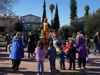- Θεατρικό Παιχνίδι από την ομάδα Παιδαγωγών & Εμψυχωτών "ΟροΠαίδιο" Τα καινούργια ρούχα του βασιλιά του καρνάβαλου”. Παίζουμε και με τη φαντασία μας μεταμορφώνουμε ανακυκλώσιμα υλικά, παλιά κουρέλια και φυσικά υλικά. Ένα εργαστήρι γεμάτο κίνηση και δημιουργία, εκεί όπου το παιχνίδι συναντά τη φροντίδα για το περιβάλλον.