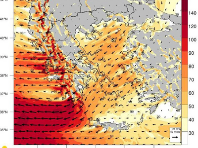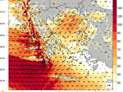 Πολύ θυελλώδεις άνεμοι σήμερα Τρίτη 20 Ιανουαρίου, δείτε νέους χάρτες του meteo