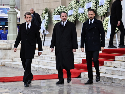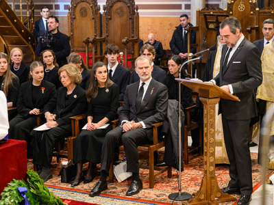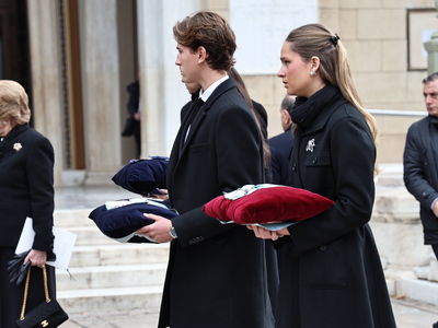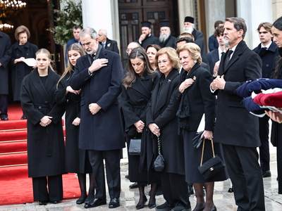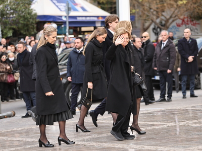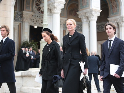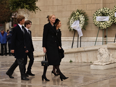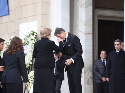 Στη Μητρόπολη Αθηνών για την εξόδιο ακολουθία βρέθηκαν η τέως βασίλισσα Άννα Μαρία, η Σοφία της Ισπανίας, ο βασιλιάς της Ισπανίας Φελίπε ΣΤ’ και η σύζυγός του Λετίθια, ο Παύλος, ο Νικόλαος και ο Φίλιππος Ντε Γκρες, η Χρυσή Βαρδινογιάννη, τα παιδιά του Παύλου, η Αικατερίνη της Σερβίας, η λαίδη Κίνγκστον, ο αντιπρόεδρος της κυβέρνησης Κωστής Χατζηδάκης, η υπουργός Πολιτισμού Λίνα Μενδώνη, ο ποινικολόγος Αλέξανδρος Λυκουρέζος κ.α..