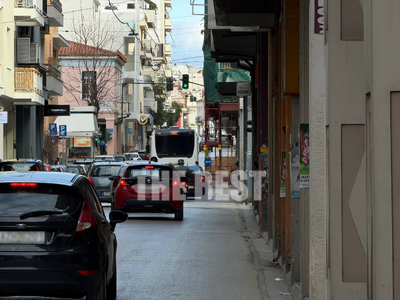 Η διπλοστάθμευση απαγορεύεται στην οδό Κορίνθου, πόσο μάλλον στη δεξιά λωρίδα της. Το ίδιο δεν φαίνεται να ισχύει για τις... σκαλωσιές!