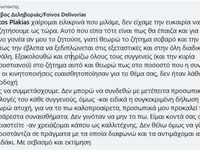 Η ανάρτηση του Φοίβου Δεληβοριά: