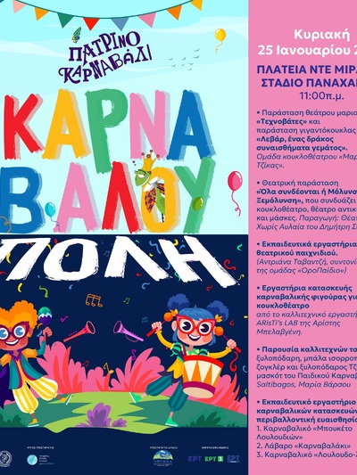 Θα πραγματοποιηθεί την Κυριακή 25 Ιανουαρίου 2026 στις 11πμ στην Πλατεία Ντε Μιράντα (Στάδιο Παναχαϊκής) προσφέροντας γερές δόσεις διασκέδασης, ξεγνοιασιάς και δημιουργίας στους μικρούς μας φίλους.