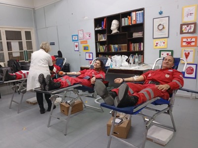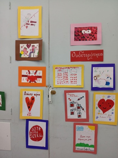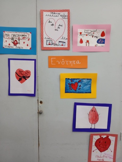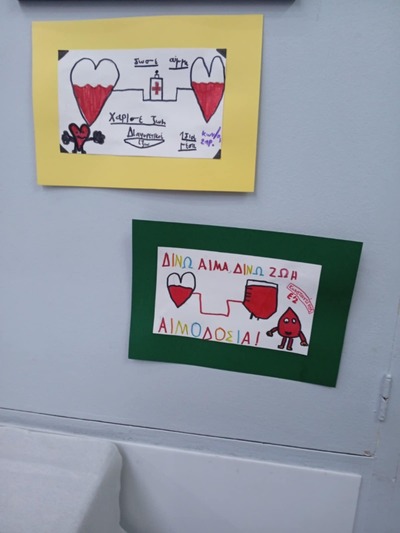 Συνολικά συγκεντρώθηκαν 26 μονάδες αίματος, ενώ το Αρσάκειο Δημοτικό έχει κοσμήσει την αίθουσα, με ζωγραφιές με θέμα την αιμοδοσία.