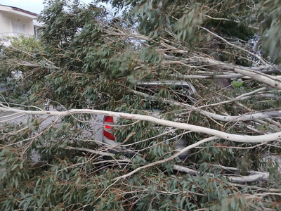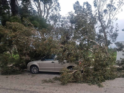 - Το πρωί σημειώθηκε πτώση δέντρου στην οδό Κεφαλληνίας, όπου κορμός ξεριζώθηκε και κατέληξε πάνω σε σταθμευμένο ΙΧ, προκαλώντας υλικές ζημιές. Σύμφωνα με πληροφορίες, δεν υπήρξε τραυματισμός, καθώς ο οδηγός του οχήματος απουσίαζε τη στιγμή του περιστατικού. Αντίστοιχο περιστατικό σημειώθηκε και στο Ρίο, έξω από το παλιό δημαρχείο.