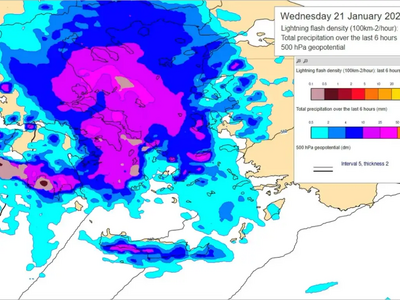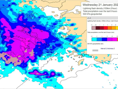 Στις 18:00 το απόγευμα, τα φαινόμενα θα συνεχίσουν με αιφνίδιες εξάρσεις και πιθανή σποραδική ηλεκτρική δραστηριότητα.