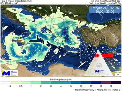 Στις 12 το βράδυ, οι βροχές θα συνεχιστούν. Τη δεδομένη χρονική στιγμή, το μεγαλύτερο πρόβλημα εκτιμάται ότι θα προκαλέσει η διάρκεια των φαινομένων και όχι η ένταση.