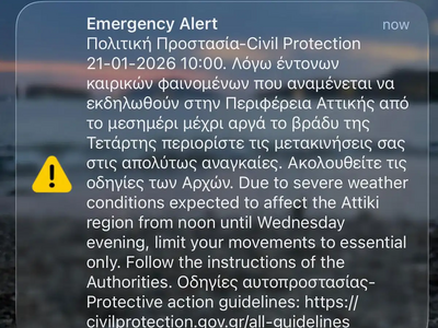 Στις 10:00 το πρωί ήχησε και το 112 στους κατοίκους της Αττικής, ζητώντας τον περιορισμό των μετακινήσεων.