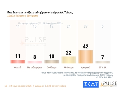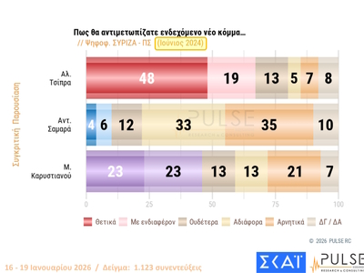 Τη μεγάλη δημοσκόπηση της Pulse για τις πολιτικές εξελίξεις παρουσίασε ο ΣΚΑΪ στο κεντρικό δελτίο ειδήσεών του το βράδυ της Τετάρτης (21/1).