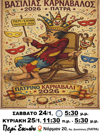«Ο Καραγκιόζης βασιλιάς Καρνάβαλος στο Πατρινό Καρναβάλι 2026» είναι ο τίτλος της ξεχωριστής παράστασης που θα παρακολουθήσει το φιλοθεάμον κοινό αυτό το Σαββατοκύριακο στο Περί Σκιών και μόνο για τρείς παραστάσεις.