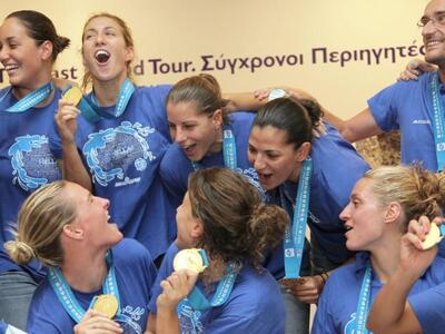 Στα πάτρια εδάφη βρίσκονται οι παγκόσμιες πρωταθλήτριες της Σαγκάης, οι παίκτριες της εθνικής ομάδας πόλο γυναικών, που επέστρεψαν στην Ελλάδα στις 12 το μεσημέρι. Αρκετός κόσμος, συγγενείς, φίλοι και πρώην αθλήτριες, βρέθηκε στο «Ελευθέριος Βενιζέλος» για να υποδεχθεί τις Ελληνίδες πρωταθλήτριες, που έθεσαν ως στόχο το... χρυσό στους Ολυμπιακούς Αγώνες του Λονδίνου το 2012.